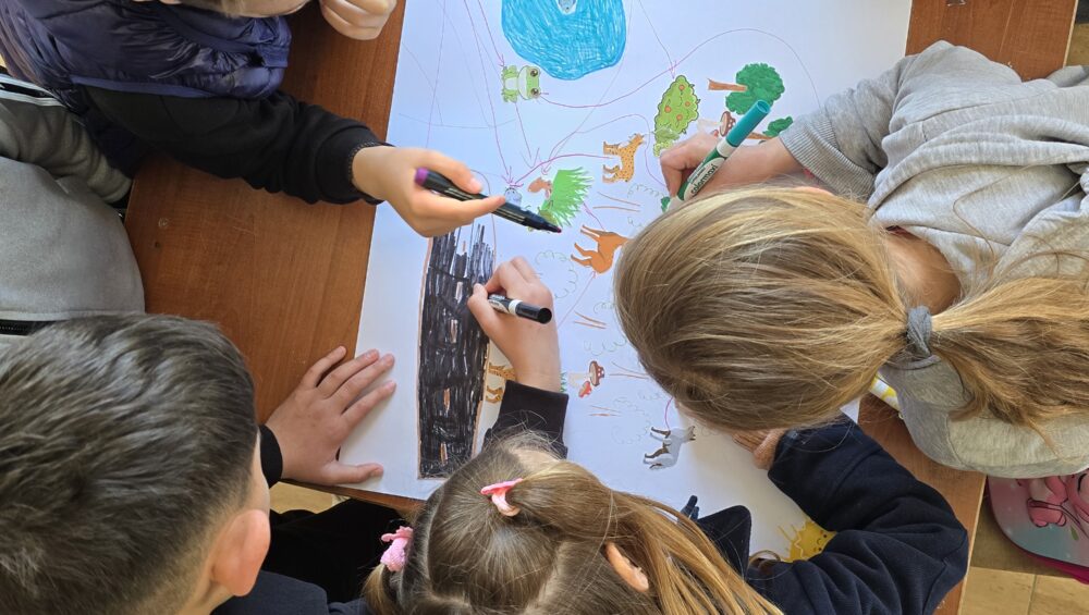 The activity began with a short presentation, adapted to the students’ age group, on the concept of ecological corridors and the importance of biodiversity for ecosystem functioning. This was followed by a practical group activity, where students worked on building food chains and food webs.